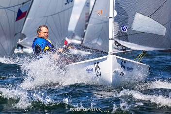 Bilden är från Finn World Masters i Helsingfors 2022 och visar Imre Taveter "in action" under ett av racen. Foto: Robert Deaves.